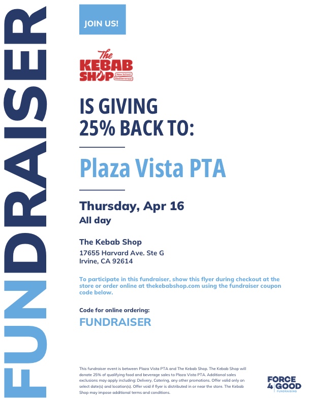 Become a PTA member, volunteer to help with PTA events, or make a donation….there are so many ways to support Plaza Vista! Learn more HERE.